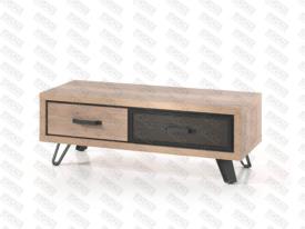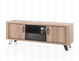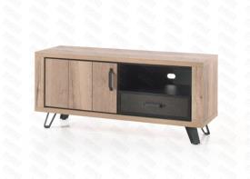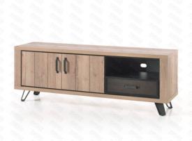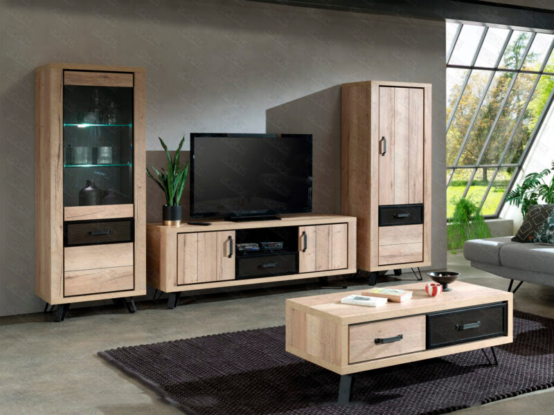 Lievens Chêne Halifax natur en combination avec métal percé Pieds métal – finition poudre noir mat Chants ABS 1 mm Fermeture avec amortisseur soft-close Préassemblé mais démontable colonne : l 71 x h 189 x p 50 cm meuble tv : l 143/180/ x h 64 x p 50 cm table basse : l 120 x h 43 x p 56 cm
