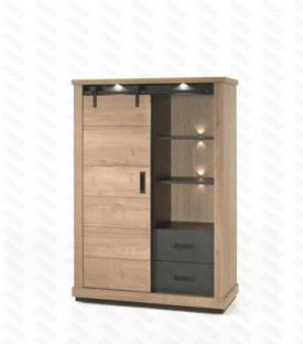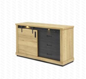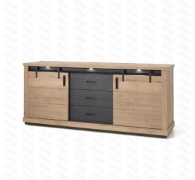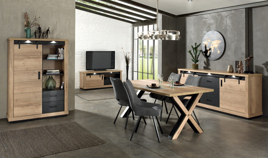 Lievens Chêne Halifax Golden Brown Porte pleine coulissante grâce à un système de suspension métallique sur roues Tous les meubles se trouvent sur sockle Chants ABS 1 mm Fermeture avec amortisseur soft-close Préassemblé mais démontable enfilade led : l 155/223 x h 94 x p 50 cm rangement (1 porte pleine - 2 tiroir - 1 niche - led) : l 120 x h 170 x p 50 cm colonne (1 porte - 1 tiroir - 1 niche - led) : l 71 x h 170 x p 50 cm meuble tv (1 porte - 1 tiroir - 1 niche - led): l 155 x h 65 x p 50 cm table basse (1 niche - 1 tiroir) : l 125 x h 42 x p 62 cm table basse avec X-pied massif : l 130 x h 45 x p 70 cm table, chaise